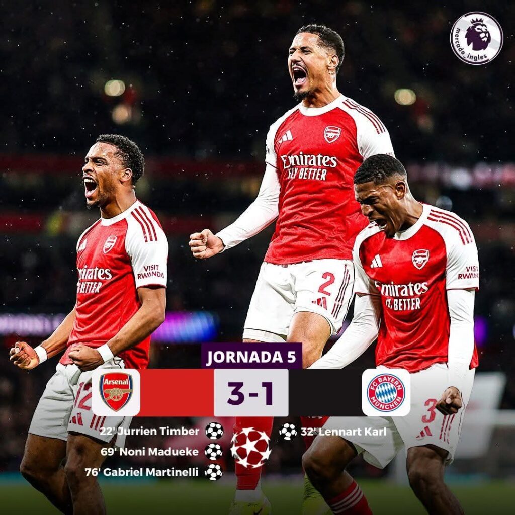 In other matches, Arsenal continued to punish teams that underestimate them, defeating Bayern Munich 3–1 at the Emirates Stadium. Goals from Jurriën Timber (22’), Noni Madueke (69’), and Gabriel Martinelli (77’) secured the win, despite Bayern pulling one back through Lennart Karl (32’).
