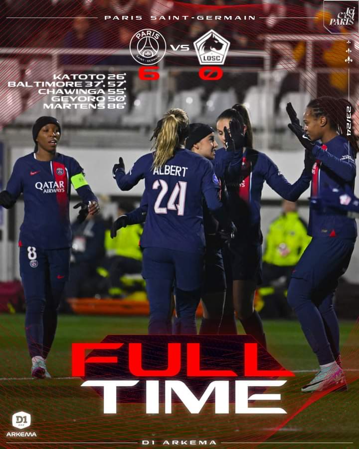 Scorchers’ captain, Tabitha Chawinga, netted her opening goal of the year in 2024 as PSG dominated Lille 6-0 in the D1 Arkema, France’s premier league.