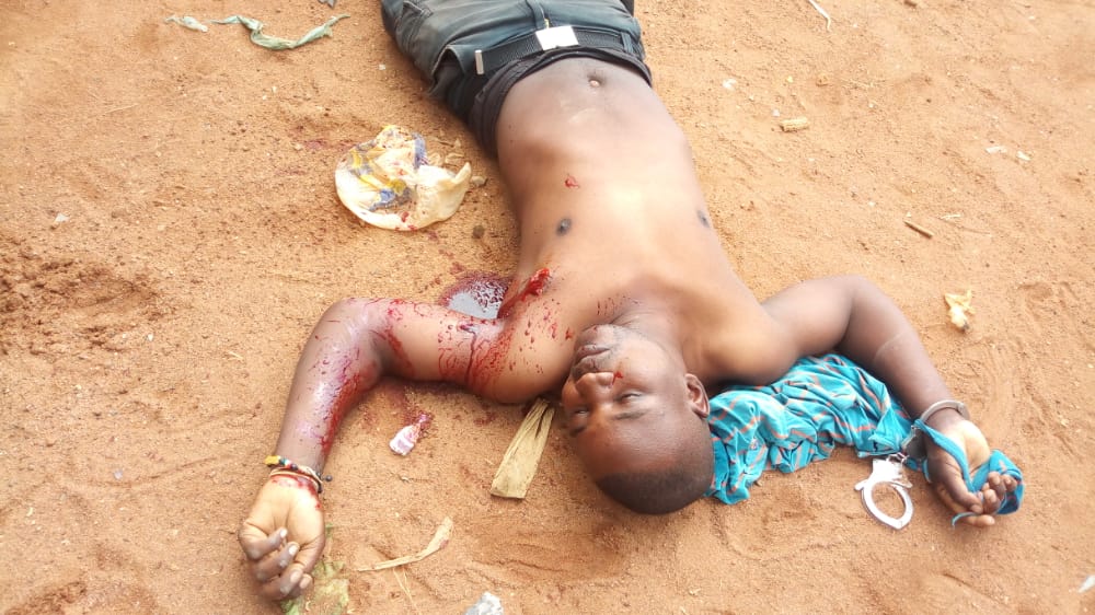 Eye witness has it that the man was shot on chest after Police Officers were in a tag of war to have him Arrested.