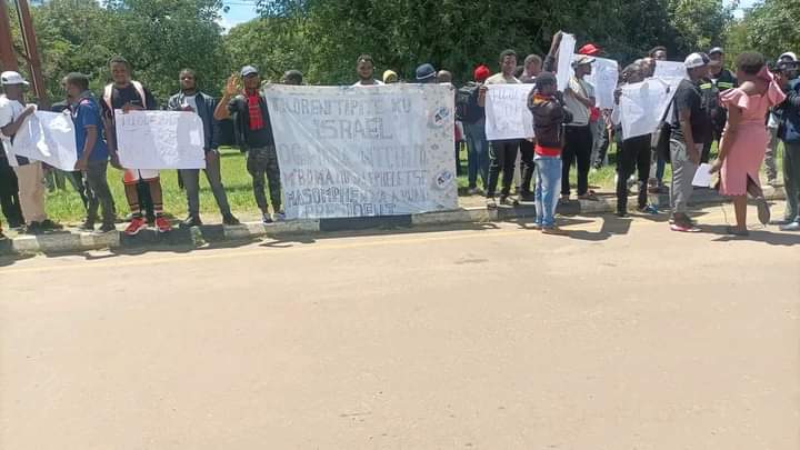 Ena mwa achinyamata omwe ali ndi chiyembekezo chopita kukagwira ntchito mdziko la Israel monga mwapangano la dziko lino ndi dziko la Israel anaima pa mseu wopita ku nyumba yachifumu yadziko lino ku city centre mumzinda wa Lilongwe poonetsa kukhumudwa ndi kuchedwa kwaboma kupereka chilolezo choti anyamuke kupita ku Israel.