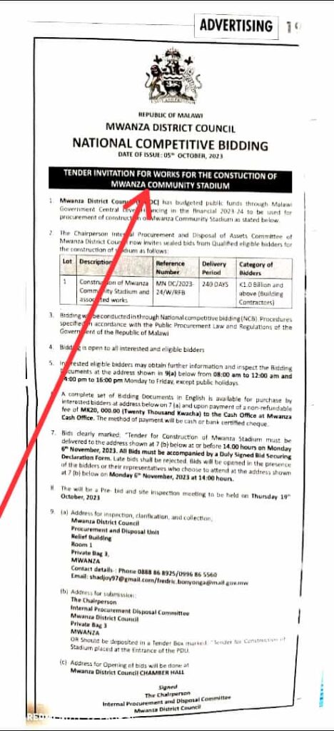 Mu nyuzi pepala ya lero Boma likuitana akadaulo oziwa kumanga mabwalo azamasewero kuti alembere za ntchitoyi.