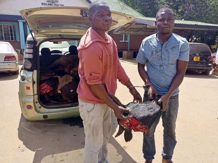 Chigaru said after a chase the suspects were apprehended in Mchesi and upon searching the vehicle, police discovered three slaughtered heads of cattle which the suspects failed to give an account of.