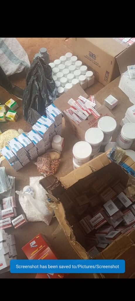 The drugs include 3,100 capsules of doxycycline, 15,000 capsules of indomethazine, 2,800 sildenafil-citrate, 4000 capsules of Amoxyline, 7,200 capsules of indomethazine, 60,700 capsules of magnesium, 3,000 capsules of diclofenac, 10,000 injection of gentamicin, 19,000 tablets of Panadol, 100,000 Benzylpenicillin, 11,100 capsules of cotrim 480mg, 250 bottles of diclofenac injection, 510 bottles of ear drops, 1000 bottles of eye drops, among others.