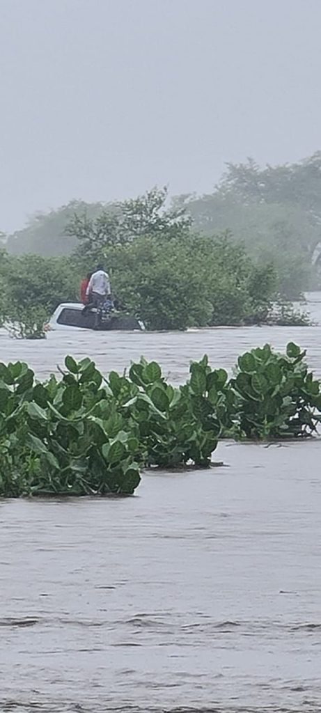 The first vehicle was washed away but fortunately saved by shrubs and some trees.